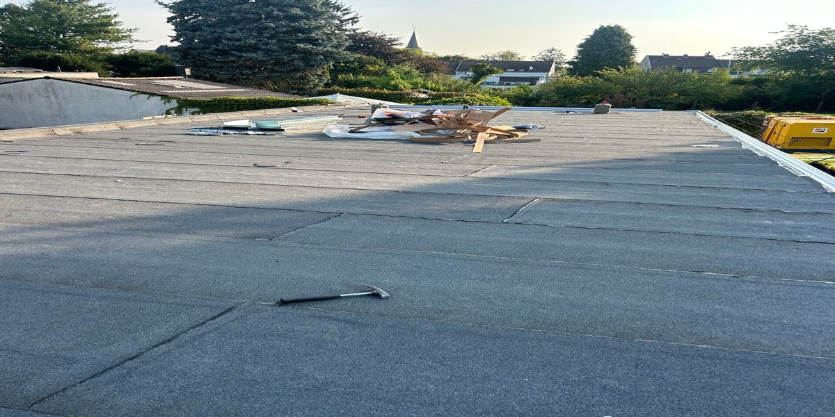 Nach dem Abriss des alten Daches haben wir die Dächer mit einer G200S4 verschweißt, einer hochwertigen Abdichtungsbahn, die für Langlebigkeit und zuverlässigen Schutz sorgt. Anschließend wurde eine hochwertige Oberlage von der Firma Bauder aufgebracht, um die Dächer dauerhaft widerstandsfähig zu machen.