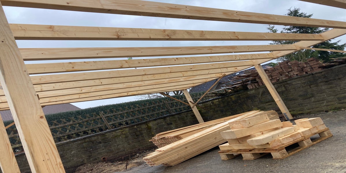 So entstand ein stabiler und optisch ansprechender Unterstand, der nicht nur funktionalen Schutz bietet, sondern sich auch harmonisch in das Gesamtbild des Grundstücks einfügt.